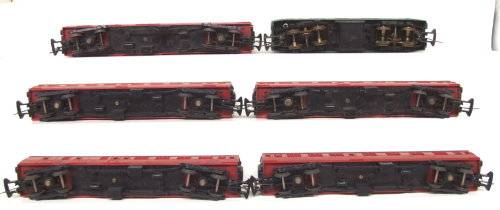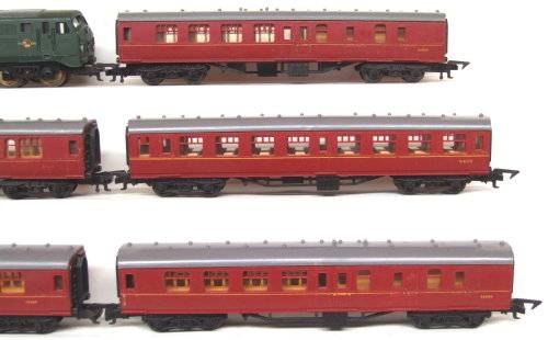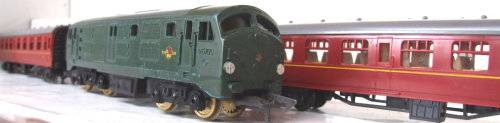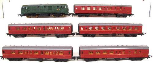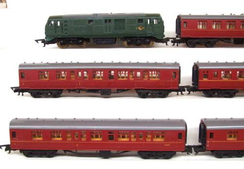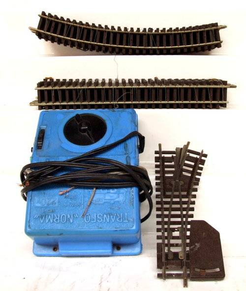 On auction is this vintage English 2 rail DC loco from the late 50's in good operational condition. It is an all wheel driven loco and Playcraft type couplers and measures 245 mm in length. Paint work and decals in fair condition for its age. It was tested, lubricated and operates well in both directions. Mechanically it is in good condition. Some corrosion on the metal parts that was remove and treat with corrosion inhibiter; 5x Plastic passenger coaches in good overall condition. I have added tracks and transformer for the same price. If this is not a bargain then I don't no one? Please see photos for detail for it is part of the description. Contact me by e-mail for enquiries. Item sold as per photos, as is.
