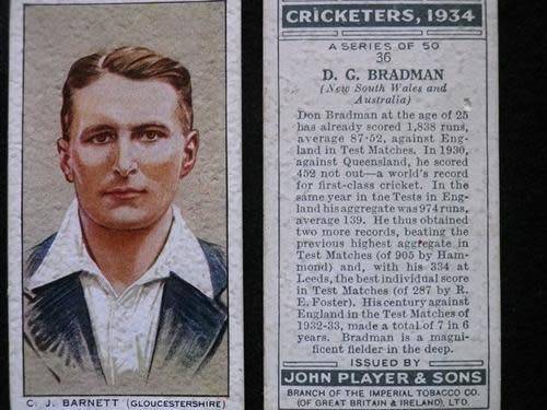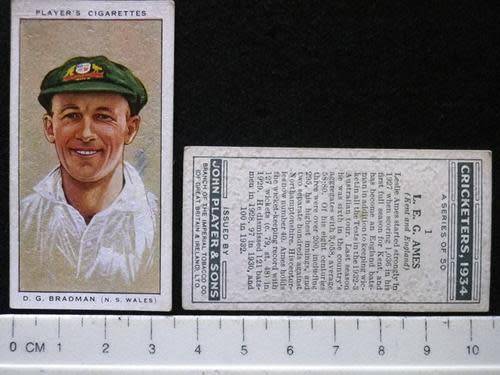 PLAYER'S CIGARETTE CARDS - FULL SET (50) OF "CRICKETERS, 1934"