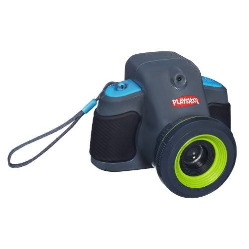 Playskool ShowCam Digital Camera and Projector - Grey/Green Snap a pic and show it off instantly with the ShowCam kids' camera from Playskool. One flip of the switch instantly turns this easy-to-use digital camera into a real working projector. With over 50 ways to customize their pics and 3 ways to display them through the projector; kids will love to create their own show over and over again. We designed the ShowCam 2-in-1 camera and projector with real kids in mind. The chunky size; soft grips and added hand strap make it so easy for little hands to hold and play. Big; colorful buttons let kids navigate the simple controls with little or no help. Plus; our built-in photo editing feature is literally child's play - no computer or extra software needed. They just press the Silly Button to choose from lots of fun stamps; frames; animations and sound effects; then snap a funny picture.Now it's super easy for kids to star in their own show to share with friends and family. Take some pics in a well-lit area; then turn down the lights to get started. Stand about 2 feet from a wall or any other flat surface and your little photographer can choose from 3 different ways to make a show. One option is to set an automatic slideshow with fun sound effects. They can also choose from 5 slideshow themes; or scroll through each photo on their own. With so many ways to customize your show; smile; say "cheese"; and get snappin'!Great kids' electronic hardware helps make great fun. The ShowCam kids' camera can store approximately 1000 photos without a memory stick. Just like the built-in stamps and animations; you won't need any extra software to download and print your pics with your home computer - just your own USB cable (not included). Let the show and the laughs begin!View larger Now it's super easy for kids to star in their own show to share with friends and family.View larger Great kids' electronic hardware helps make great fun.View larger Built for kid play.View larger Create your own show.View larger Easy for little hands to hold and play.View larger For more information about Hasbro¿s Corporate Social Responsibility efforts visit the Hasbro website. Features/Specifications 2-in-1 kids' camera and projectorKids' digital camera turns into a projector with the flip of a switchBuilt for kid playIntuitive design for preschoolers including easy controls and soft gripsSilly built-in editingSilly Button lets kids add stamps; frames; animations and sound effects right before they take a photoCreate your own showKids can star in their own ShowCam show to share with family and friendsNo software neededCustomize; show off; store and download photos without extra software or memory (USB cable not included)Ages 3-7Requires 4 AA alkaline batteries (not included)USB A to Mini USB B cable needed to download images to a computer (not included)Stores approximately 1000 photos - actual capacity and individual photo sizes will vary based on picture-taking environmentsFor best projection quality; camera should be approximately 24 inches from projection surfaceIncludes 2-in-1 digital camera and projector; hand strap and instructions