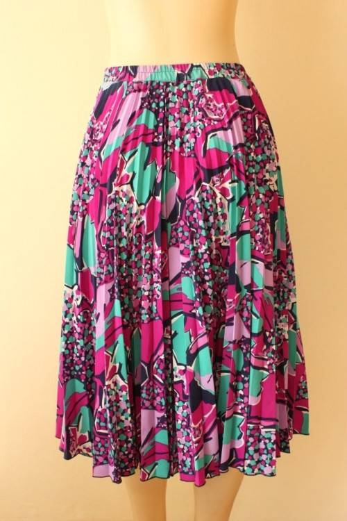 Purple and green abstract print pleated skirt. Size 34/36. In good condition, no label.