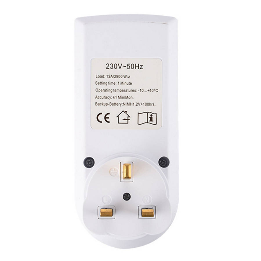 Features: ? 1. The appearance is simple and generous, and the large screen design is clear at a glance. 2. High quality, sturdy and durable. 3. Multi-function display. 4. Timer sockets, meeting different standards in various countries. ? Specification:?? ? Installation: plug-in type Voltage : 230V-/50Hz(British/Europe style) Voltage : 120V-/60Hz(American style) Voltage : 240V-/50Hz(Australia style) Rating :230V-AC/13A/2900W(British style) Rating :120V-AC/15A/1800W(American style) Rating :230V-AC/16A/3680W(Europe style) Rating :240V-AC/10A/2400W(Australia style) Operating temperature : -10+40?ᆪC Accuracy : +-1 Min/Mon Battery : NIMHL1.2V>100hrs ? Package Included: ? 1 x Digital Timer Switch 1 x Instruction Manual