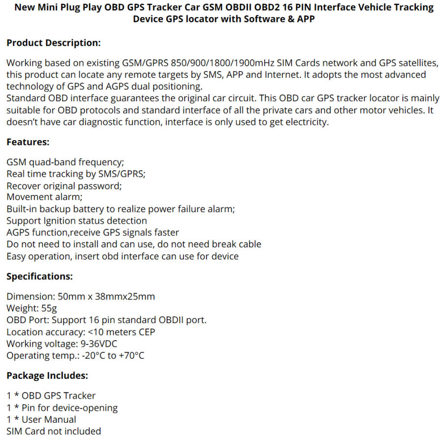 Plug Play OBD GPS Tracker Car GSM OBDII OBD2 16 PIN Interface Vehicle Tracking Device with APP