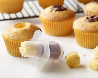 2. Remove the corer from the cupcake and push the plunger down to eject cupcake core