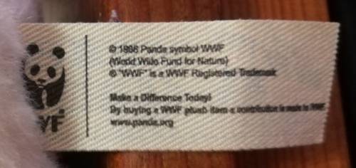 Bear is 20cm high in a sitting position with leather ear tag and a plush WWF tush