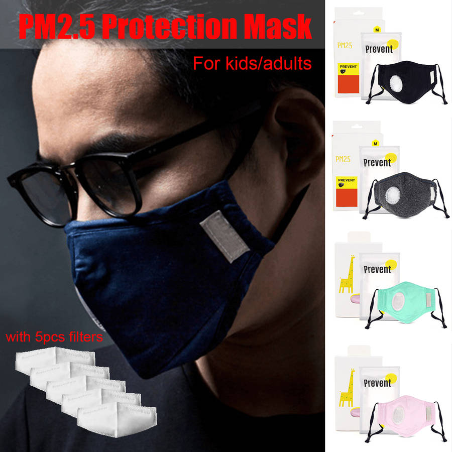 PM2.5 Kids/Adults Cotton Face Mouth Mask With 5 Filters Dust-proof Anti-haze Re