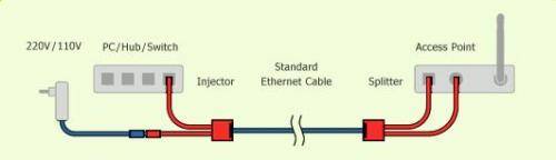 It includes 2 cables: The Injector combines power and Ethernet together at the power supply end, and the splitter separates the Ethernet and power at the router.