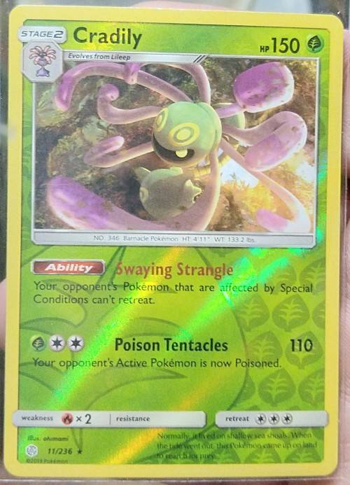 POKEMON CARDS - Cradily - 11/236 - Rare Reverse Holo Sun and Moon: Cosmic Eclipse