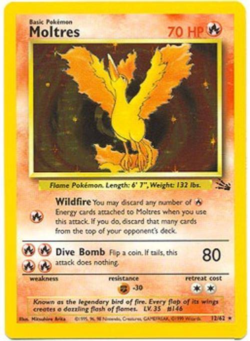 Pokemon Fossil Holo Card - Moltres Holofoil 12/62
