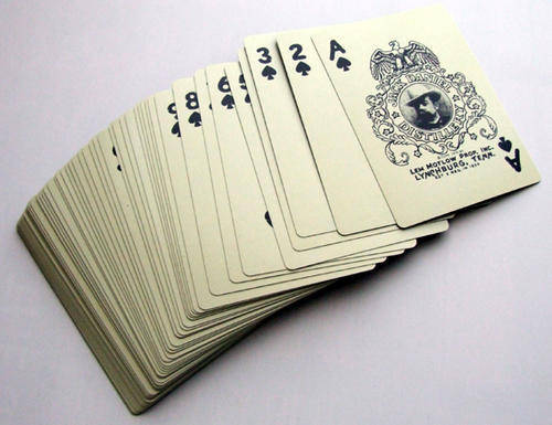 Below: The playing cards design is a reproduction of the confederate war decks.