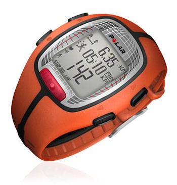 -- black and orange - RS300X SD with S1 foot pod for real-time pace/distance