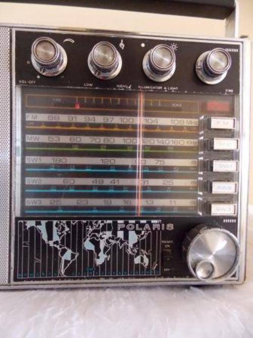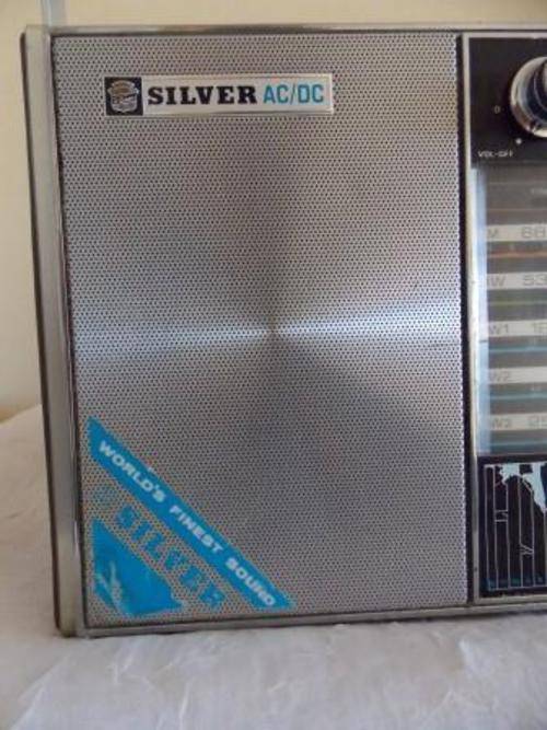 POLARIS SILVER AC/DC PORTABLE RADIO. NO ELECTRIC CORD AND NEEDS AERIAL OTHERWISE IN GOOD WORKING CONDITION!! HEIGHT 20cm LENGTH 30.5cm WIDTH 9cm. SHIPPING COSTS R65.00