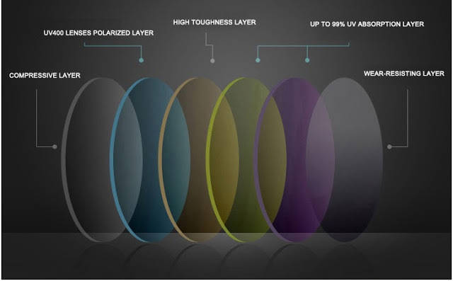 • Polarized lenses eliminate glare and reduce eye fatigue