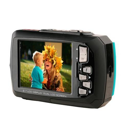 The Polaroid PDC766 waterproof camera is a must for water sport fanatics. Waterproof for up to 3 meters makes this a must-have for all families. Dual screen technology makes taking selfies easy.