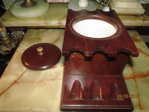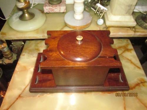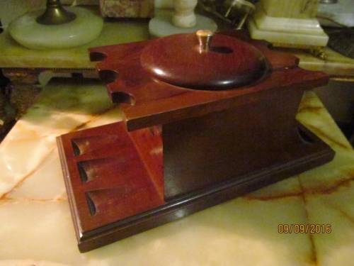 MAGNIFICENT VINTAGE Tobacco Pipe Stand for SIX Pipes - with Humidor and Lid in Center
