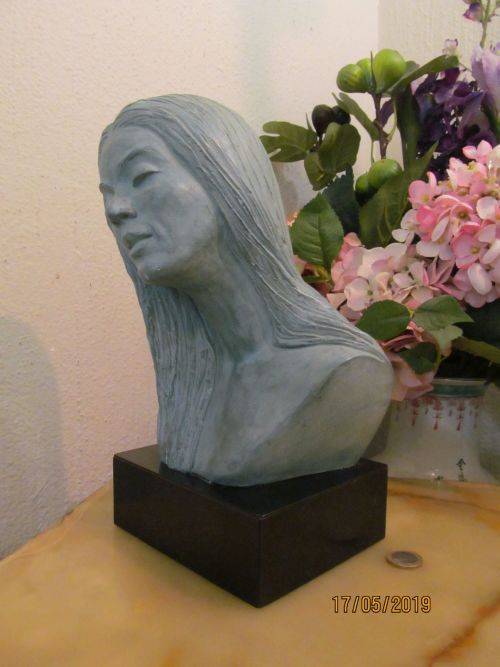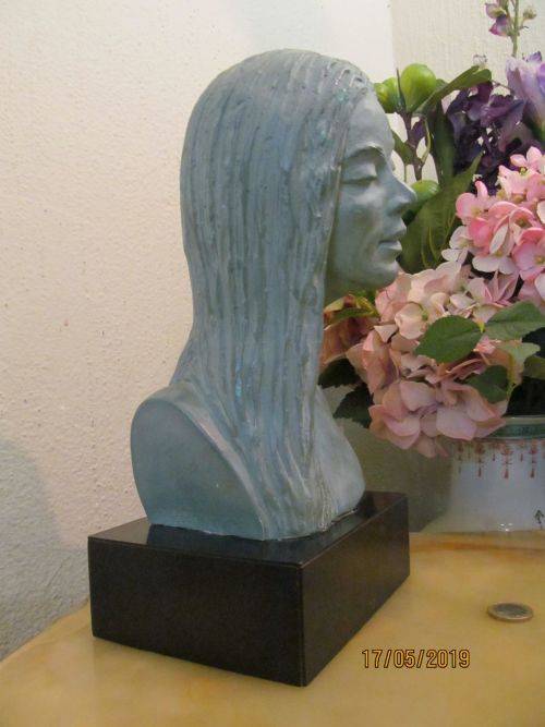 THIS BUST / SCULPTURE IS SIGNED AT THE BACK DIRECTLY BENEATH THE WOMAN'S HAIR AND ALTHOUGH DIFFICULT TO READ, THE SCULPTORS SURNAME APPEARS TO BE "SAAIMAN" BUT COULD ALSO BE "SACKMAN" THE YEAR HOWEVER IS 1972