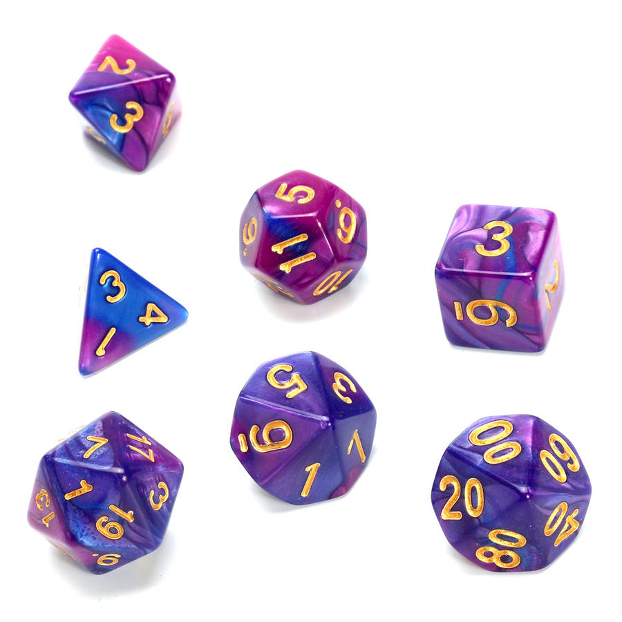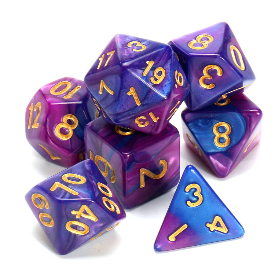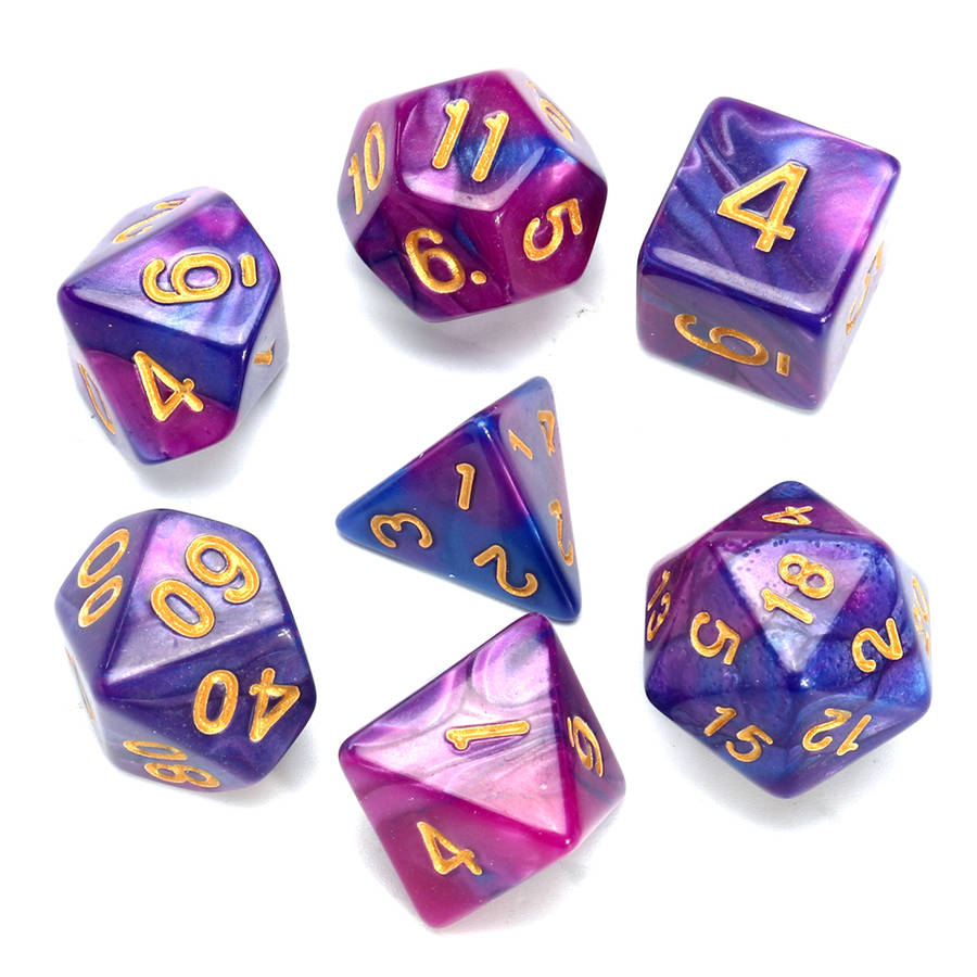 Features: - Customize your games with very personal set of dice. - Each color comes with 7 different dice: 4, 6, 8, 10, 12, 20 sided dice and a percentage (%) dice. - A perfect gift for TRPG game lovers .