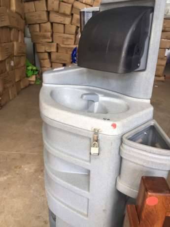Brand new. Valued at R15,000! SK3-3000 PolyJohn Applause Two User Sink Direct Connect Handwash (Mains Hookup) sink. This two user station direct connect handwashing sink comes with included soap and towel dispensers and is outfitted with a direct connection to a hose and drain, which provides for unlimited capacity due to a flow control valve. One of our most popular models, this thirty-two (32) inch working height works well for small children or wheelchair bound patrons.