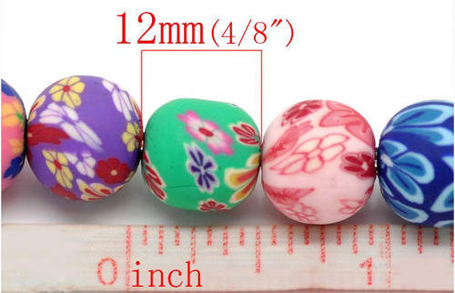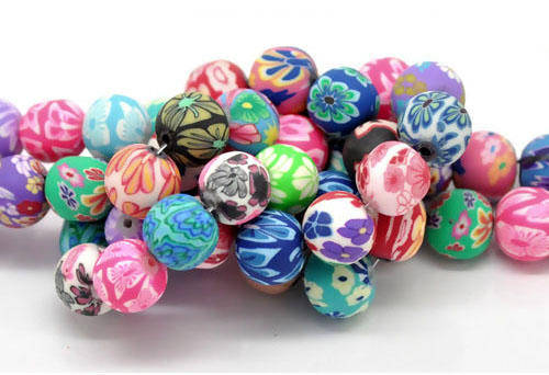 POLYMER CLAY AND CERAMIC - ASSORTED - MULTICOLOR - ROUND BEADS - 12mm