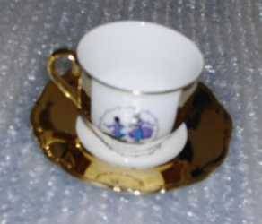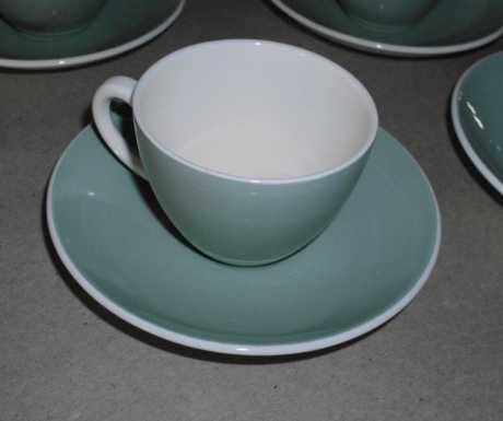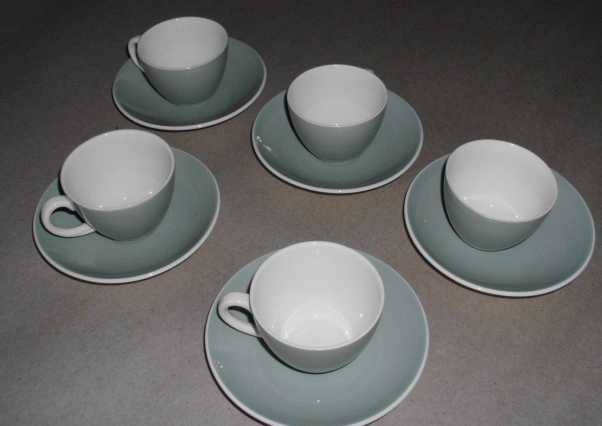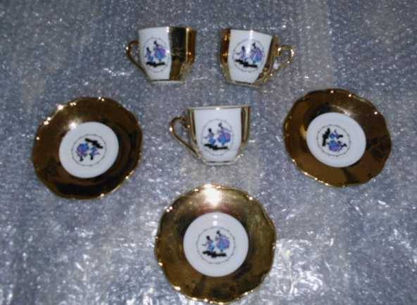 5 Poole Coffee Cups - please look through all pictures and read all the descriptions to note the condition. 3 cups are complete and are in a good condition. Two are damaged in some way - read further. Three Golden coffee cups, made in Czechoslovakia in excellent condition.