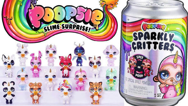 Feed Sparkly Critters water with their unique drink can to find out if they spit or poop slime!