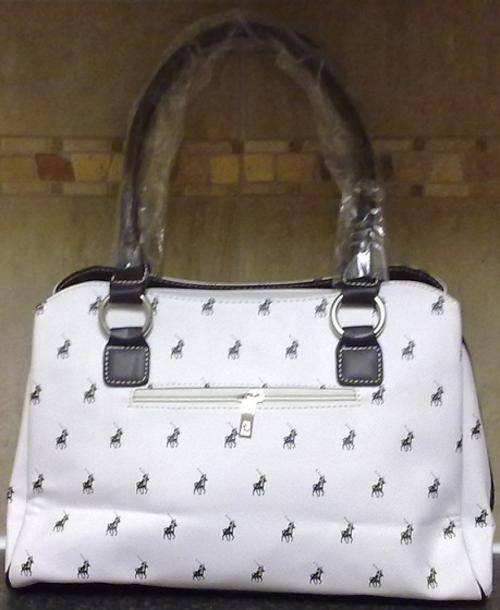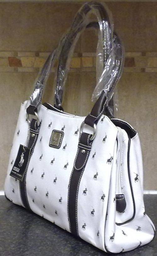 Bag is White with dark brown handels 37cm Wide and 25cm high