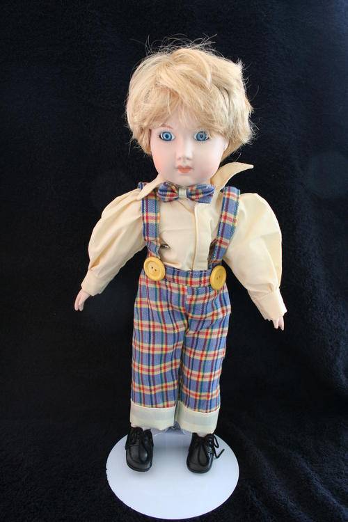 PORCELAIN BOY/GIRL DOLL--FULLY DRESSED WITH STAND