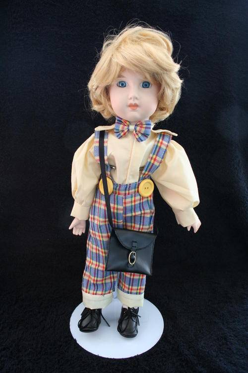 PORCELAIN BOY/GIRL DOLL--FULLY DRESSED WITH STAND