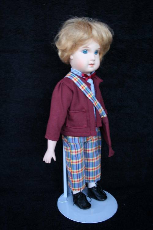 PORCELAIN BOY/GIRL DOLL--FULLY DRESSED WITH STAND