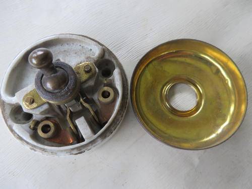 PORCELAIN / BRASS LIGHT SWITCH - 55 MM DIAM. - NOT CLEANED OR POLISHED - AS PER SCAN