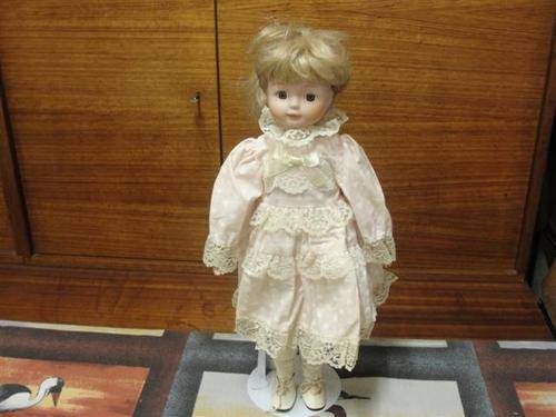 I am selling a collection of 3 Porcelain Dolls. They are in extremely good condition with no damage to report. Still has the Original Clothes and 2 comes with their stands. This Doll is standing at 40cm High. I am selling them seperately so look out for my other listings.