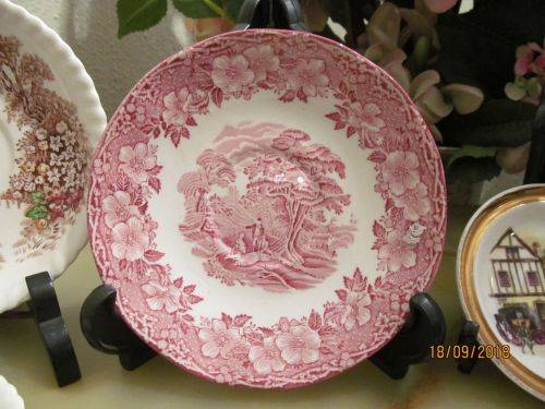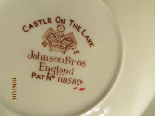 1)- A 1939-1970 JOHNSON BROS "CASTLE ON THE LAKE" DEMITASSE SAUCER IN MULTI COLOR THE ITEM IS STAMPED UNDERNEATH - "CASTLE ON THE LAKE, JOHNSON BROS, ENGLAND, PAT NO. 118580" THIS ITEM IS IN PERFECT CONDITION WITH NO CRACKS, CHIPS, CRAZING OR DAMAGES ETC 1.8cm HEIGHT..... 3.5cm DIAMETER OF BASE.....11.4cm DIAMETER OF RIM
