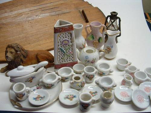 Porcelain Ornaments with wooden Shelves