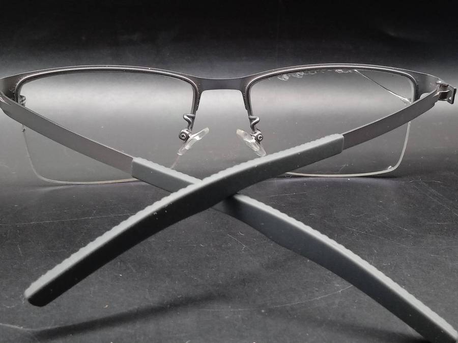 P9887 Eyewear Eyeglasses Frames, half-rimmed, non-spring non-hinge legs, light-weight. One lens is cracked and both have some chips around the edge (Please see pics).