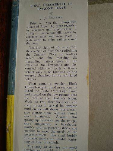 Hardcover with dustjacket - jacket has some wear and tear - sellotape marks on the endpapers which also show discolouration. Otherwise a sound, well-bound copy of this scarce title about the history of Port Elizabeth 1820 settler content.