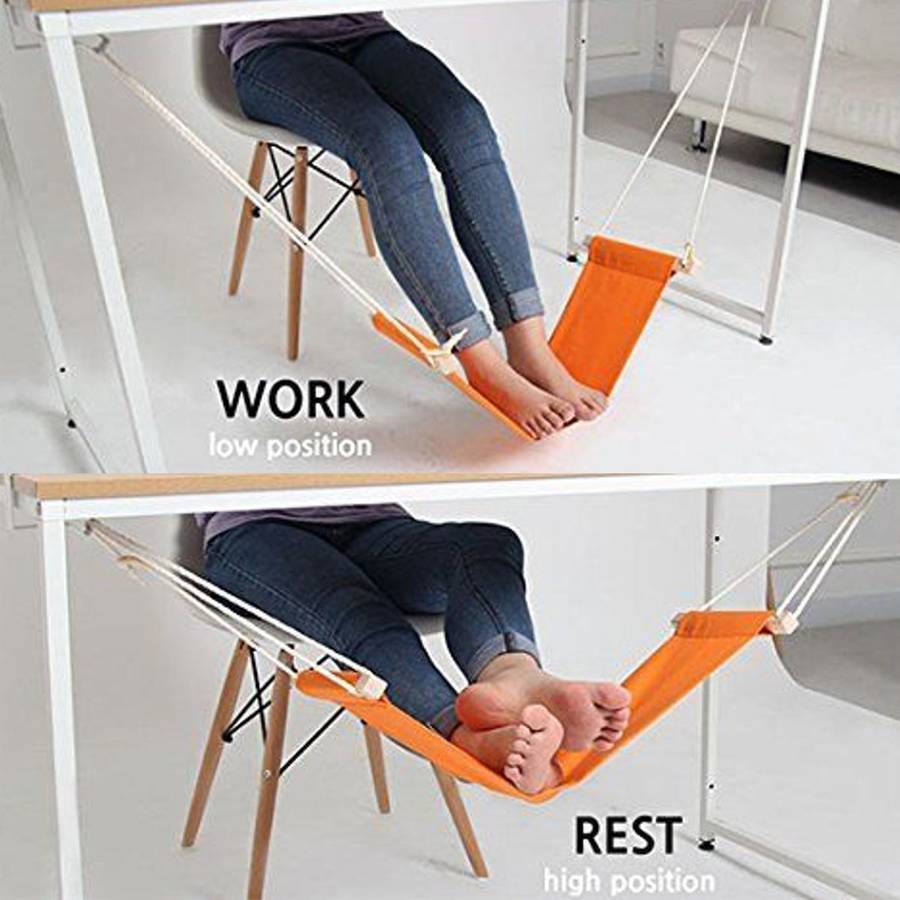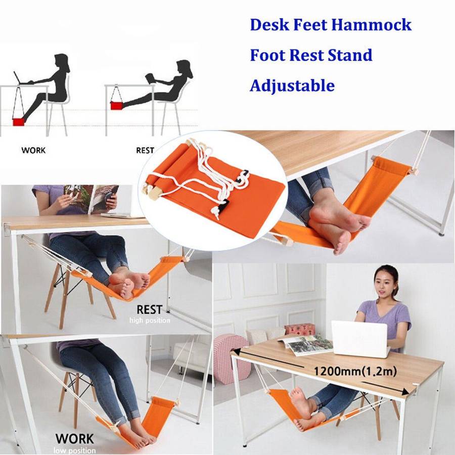 Features: Made of canvas material, durable in use. Adjust the height between work and rest mode. It hooks onto either side of any desk with two metallic clips. You can adjust the length of the rope from 200mm to 450mm. The foot rest is a desk hammock designed specifically for resting your feet. This unique hammock design replaces that extra chair you use to prop your feet up. The setup consists of a narrow strip of canvas and a set of clips to mount on either end of your desk that hold small lengths of rope. Specification: Material: Canvas Color: Orange Load-bearing: 50kg Length of Rope: 20cm - 45cm Size: (L)X(W)65X17cm/25.59X6.69 inch(appr.) Installation & Usage: Hang both rings on the right and the left of the desk respectively. Adjust the length of cotton rope with a stopper mounted in the rope. Insert the cotton rope to clasping part of ring mounted in the desk. Make comfortable position putting your foot quietly on the foot support after having a seat. If the adjustment of foot position is necessary, pull or push the ring toward your body. If the adjustment of foot height is necessary, control the cotton rope length with a stopper. Notice: Please allow 1-3cm error due to manual measurement and make sure you do not mind before ordering. Please understand that colors may exist chromatic aberration as the different placement of pictures. Package included: 1 x Desk Hammock Detail pictures: