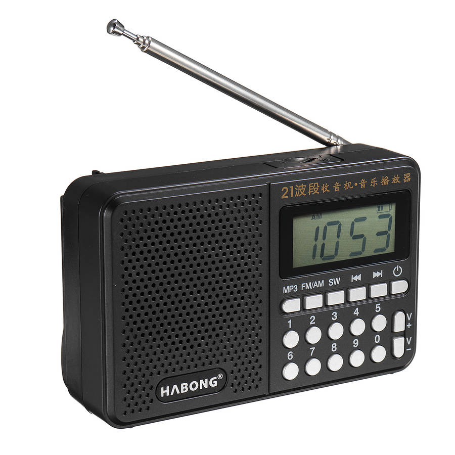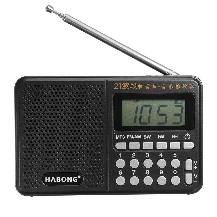 Features: FM+AM+SW (18 short wave bandss). A total of 21 bands radios Advanced DSP digital tuning display TF card / U disk music playback Digital key selection program Power switch: Press the power button to turn the machine on and off MP3: Tap to play the program in the TF card/U disk, tap play/pause again SW: Open the antenna, tap to play 118 shortwave broadcasts, and the up and down buttons are SW118 shortwave selection buttons FM / AM: Click to play FM1 (87.0108.0MHZ), press FM button in FM mode to select FM2 campus radio (7087MHZ), and tap play AM medium wave broadcast (5221620KHZ) again Previous song: In MP3 mode, tap to play the previous track of TF card/U disk, long press and rewind, in SW118 short wave mode, tap to select the last short wave bands Next song: In MP3 mode, tap to play the next track of TF card/U disk, long press fast forward, in SW118 short wave mode, tap to select the next short wave bands Volume knob: Increase (V.+) or decrease (V.) volume Number keys 09: Enter the number in MP3 mode to select the track you want to listen to (for example: enter 28 to select the 28th song) TUNING wheel: In the radio mode, rotate the tuning button to listen to FM, medium wave and short wave broadcast USB: Insert a USB flash drive to play music Headphones: Insert headphones into DND mode TF card: insert TF card to play music DC 5V: Connect the data cable to charge Power Output: 3W THD: a5% Speaker: 57mm 3 Freq.Response: 240Hz15KHz FM Frequency: 70MHz108MHz Input Power: DC 5V Material: Plastic Battery: 18650 3.7V/500mAH Package Included: 1 x Portable Radio 1 x 18650 Battery 1 x USB Charging Cable