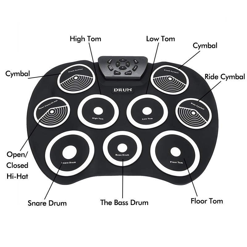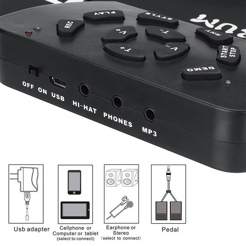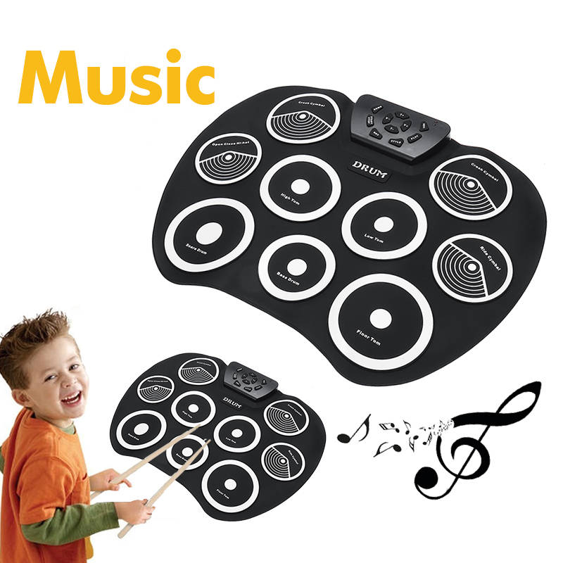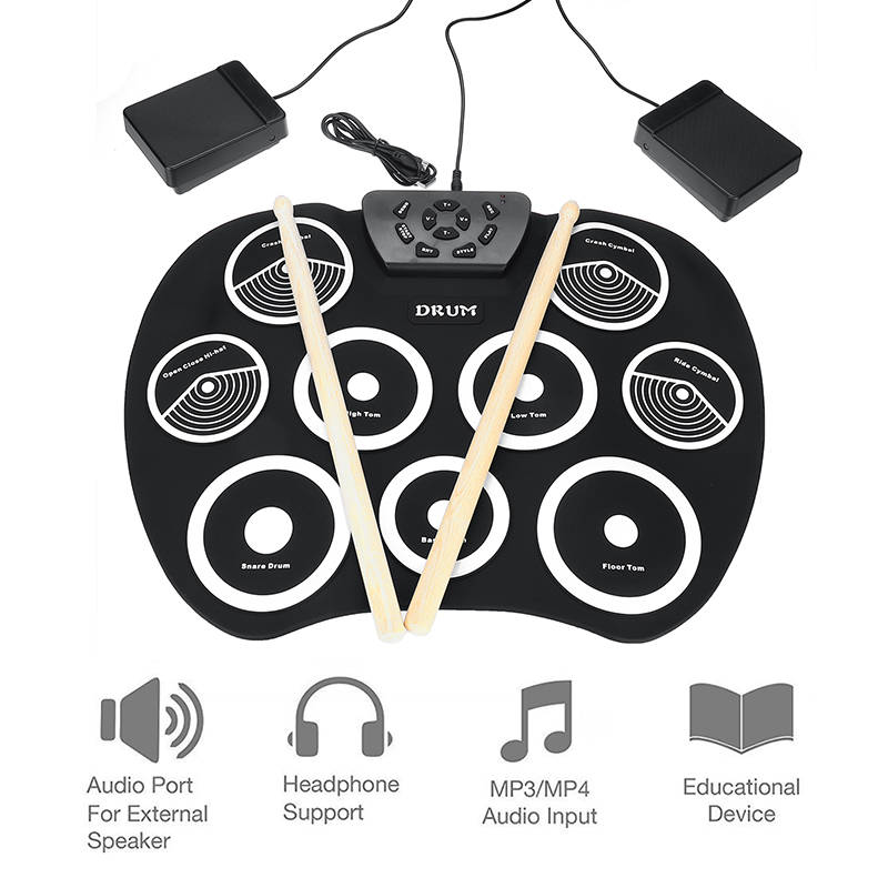 Portable Electronic Drum Set Roll Up Drum Kit 9 Silicon Pad For Beginner Features: