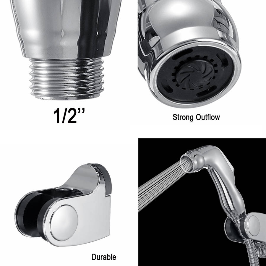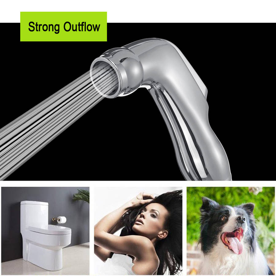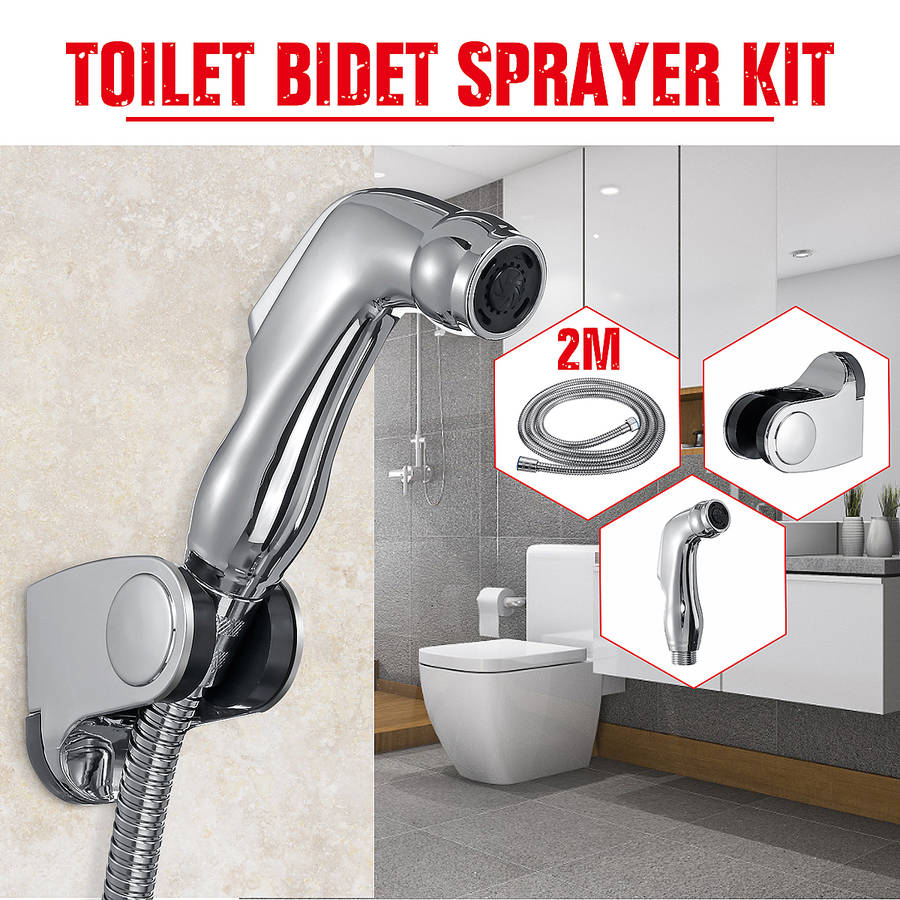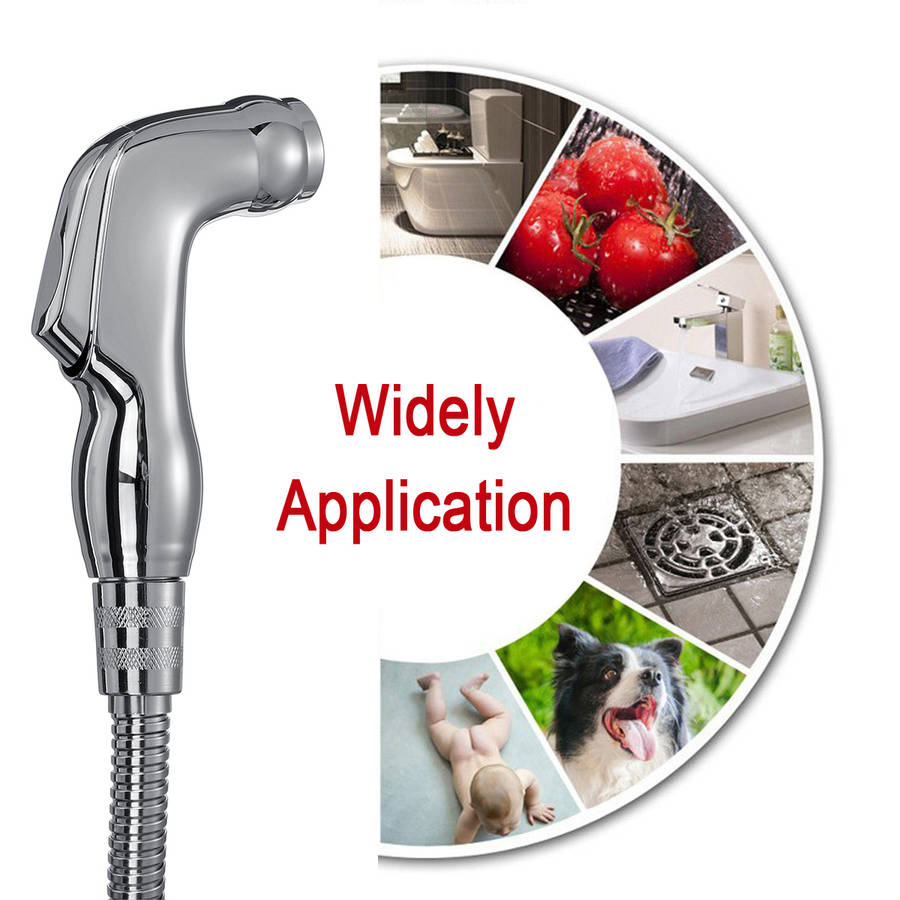 Specification:a Name: Bidet Sprayer Kit Color: Silver Material: Resin Features: 1. A great cleaning bidet sprayer kit for a whole family (even for pet washing), especially for anyone with limited mobility due to surgery, arthritis, postpartum or injuries. 2. Easy to install. 3. High-quality resin bidet sprayer, strong outflow adapter, stretching resistant, rust resistant, durable for many years use. 4. The holder can be mounted on the wall.a Package Include: 1 x Sprayer 1 x 2m Hose 1 x Holder