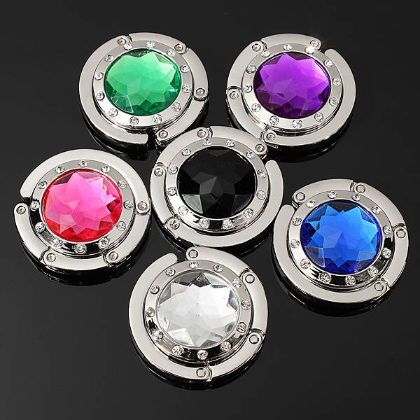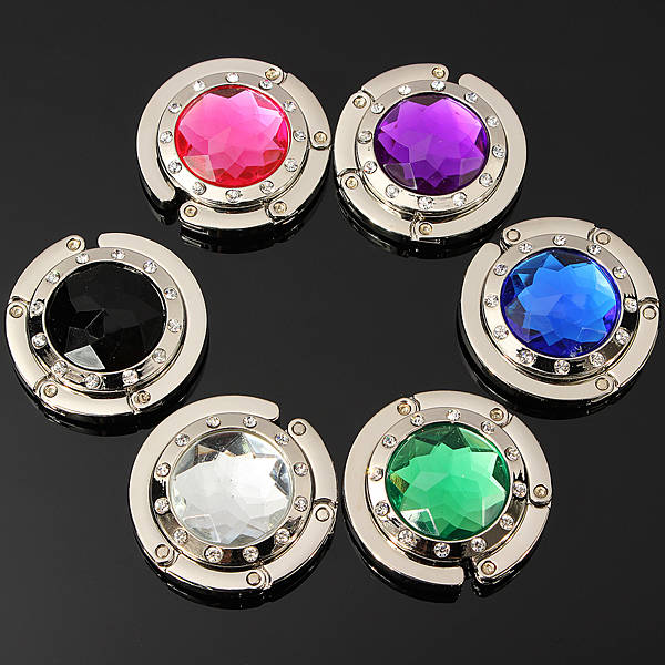 Description: Portable Round Folding Purse Handbag Bag Accessory Hook Hanger This is a Portable Round Folding Hook Hanger. Foldable and portable size, convenient for you to carry. Usually used to hang your handbag from a table or bar when you are in Cafe, Restaurant, Bars,Lady's restroom and any others places, so that your handbag needn't to be layed on the ground or on the dirty floor. You can hang your handbag on the hook by the straps or rings that are attached to your handbag. This bag hook is the best choice to be considered as gift for Mothers Day,women's day, private use, Weddings, Wedding Guest Gifts, Birthdays, Christmas, and any purse owner. Specification : Material: Alloy + Crystal Weight: About 41g Color: Black,Silver,Purple,Rose,Green,Sapphire Size: Diameter:App 4.3cm,Height:App 1cm Package Includes: 1 x Folding Hook Hanger Details Pictures ;