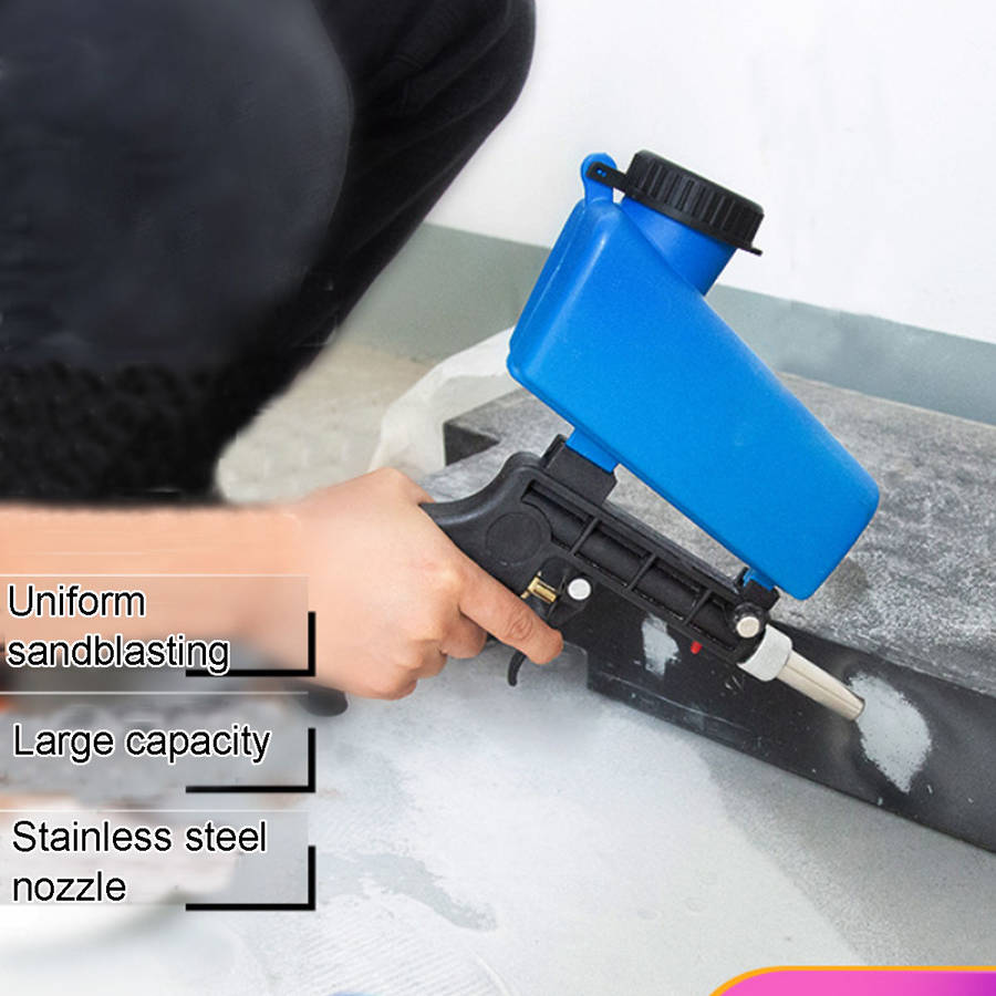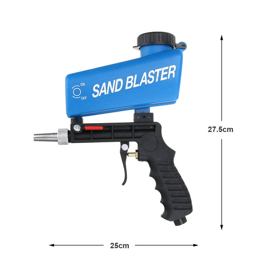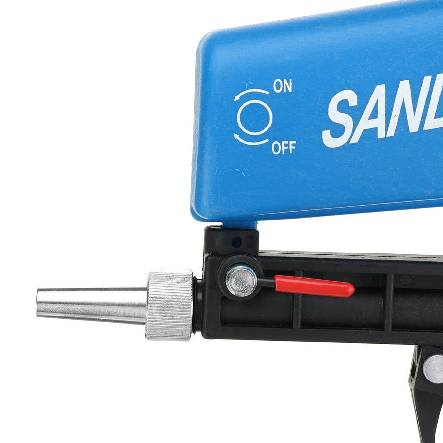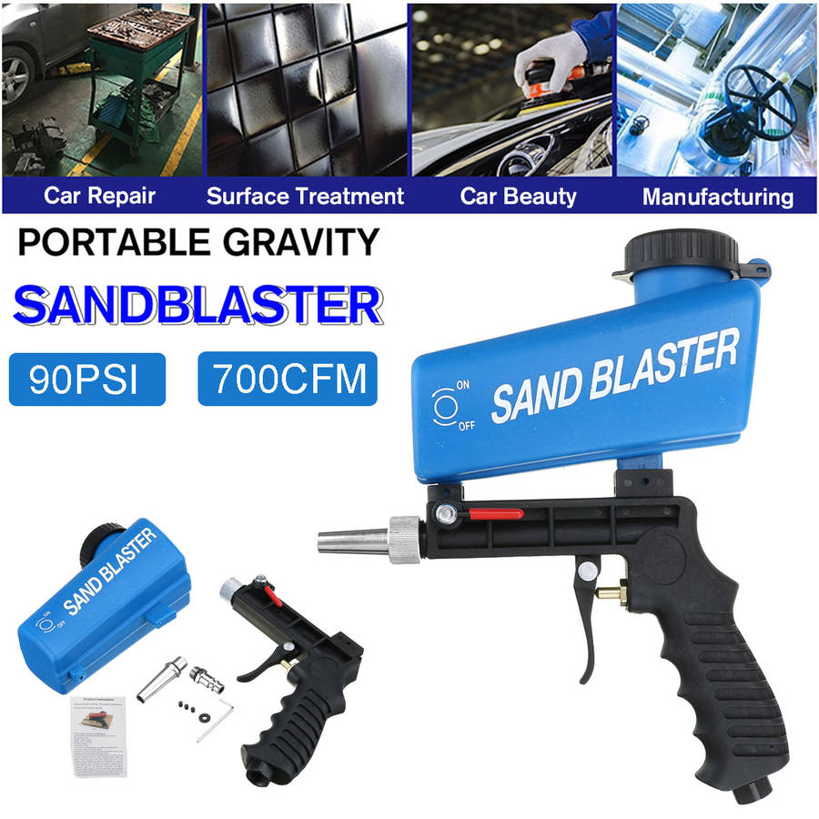 Portable Sandblaster Kit Air Nozzles Feed Sandblasting Blast Guns Tube Sand Speification: Material: Plastic Housing Pressure: 90 psi Capacity: 21lbs Consumption of air: 700cfm Connector: 1/4 inch Features: - Portable,easy to store and transport. - Adjustable,sandblast with your preferred airflow. - Lightweight,prevents muscle fatigue and discomfort. - Ergonomic design allows for comfortable sandblasting and total control of the tool. - It is a handheld sandblaster that will allow you to remove rust, scale, and corrosion even in tight spaces. Package included: 1 x Sandblaster 2 x Nozzle 5 x Accessery More details: