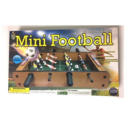 Perfect for the home office or pub this Tabletop Football Game features a mini table with 4 handles 2 soccer balls 12 players and 2 score bars.