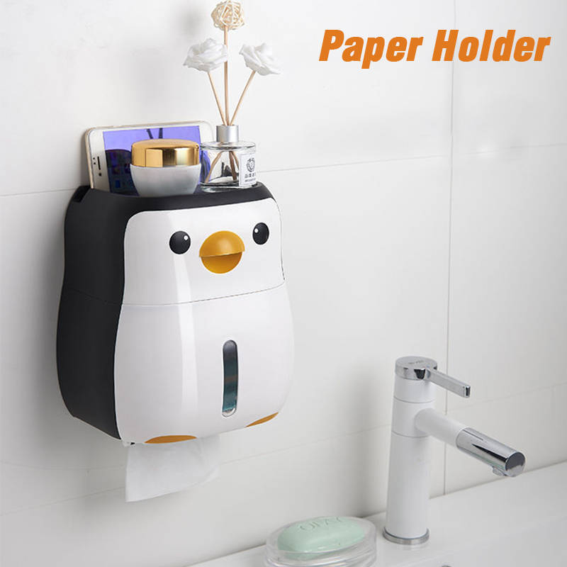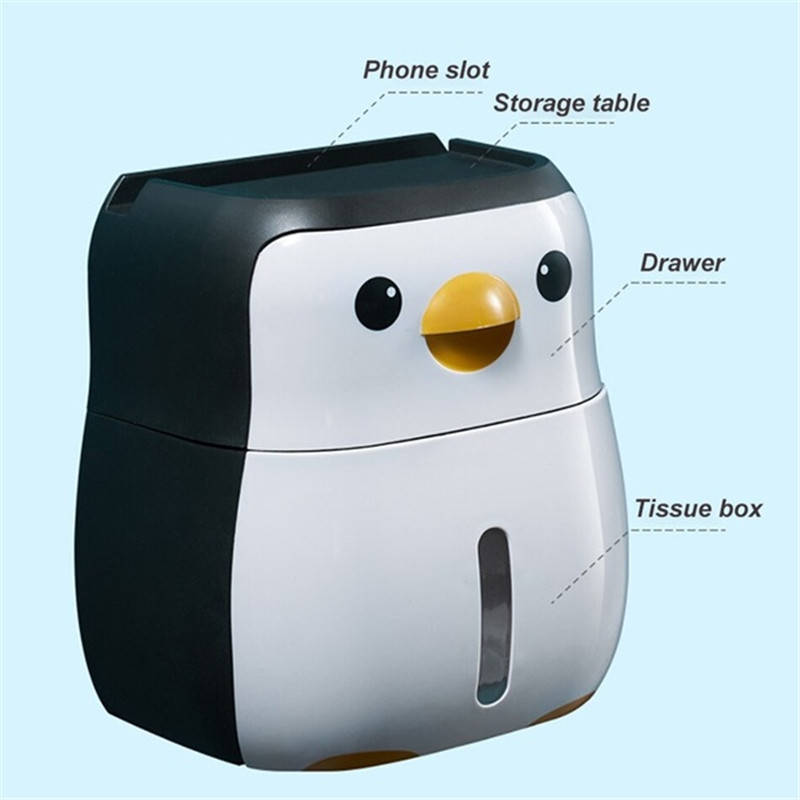 Portable Toilet Paper Holder Penguin Tissue Box Wall Mounted Roll Paper Bathroom Waterproof Storage Shelf