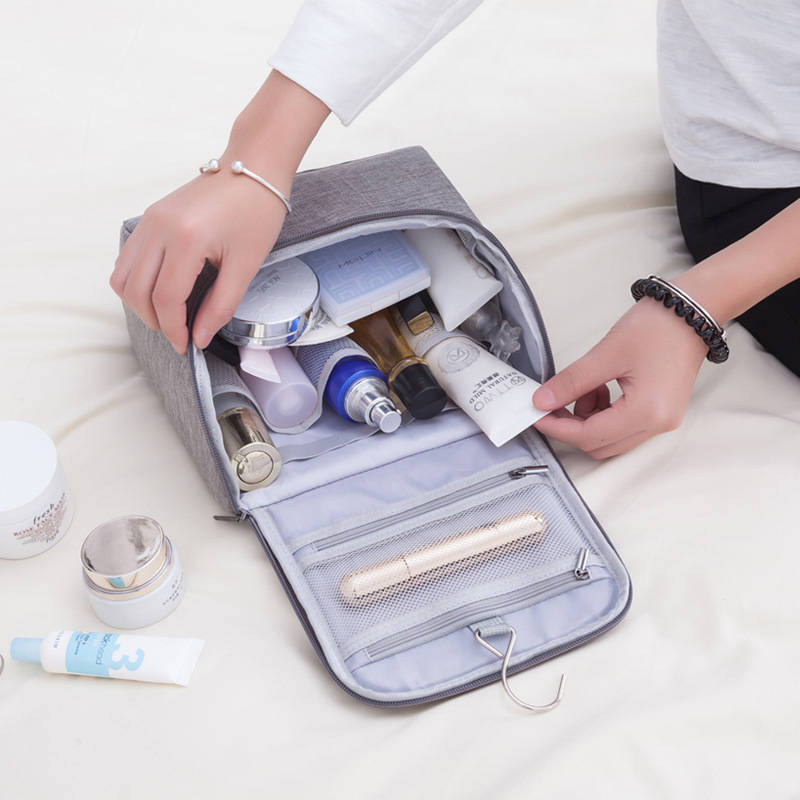 Specification: Material: Oxford Color: Black, Light Blue, Rose Red, Navy Blue, Purple, Gray Size: 21 x 21 x 14cm / 8.27 x 8.27 x 5.51 Package Included: 1 x Portable Travel Cosmetic Bag