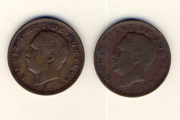Portugal 1883 & 1884 Twenty Reis coins - sold as a set