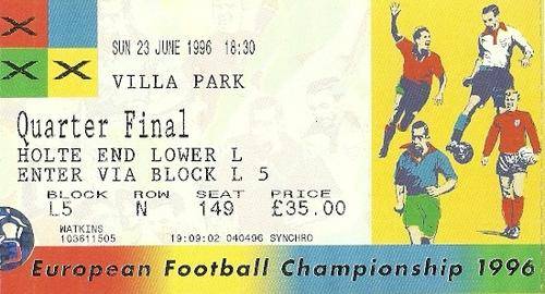 Portugal v Czech Rep. Euro 1996 Quarter Final Match Ticket