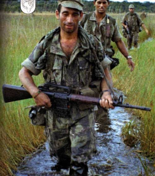 Combat trousers in typical style worn by Portuguese Army throughout their colonial wars in Angola, Mozambique and Guinea Bissau. Waist is 40cm. Inseam 70cm. Very good, field-worn condition with repair to one seam. No label.