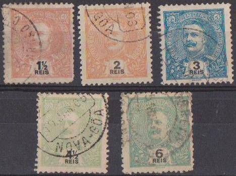 Portuguese India 1898/1903, 5 different vols, all fine used & sold as per scan.