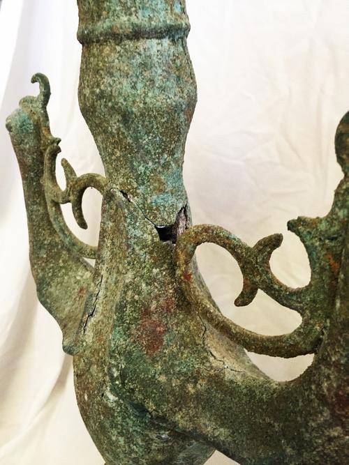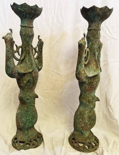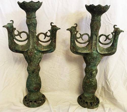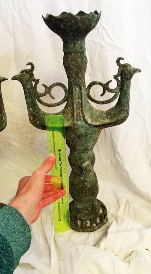 MARKINGS: NO VISABLE MARKINGS , LOVELY ENGRAVED DETAILS COMPLETELY COVERING THE CANDELABRAS BUT ALOT OF IT IS COVERED WITH SOME KIND OF DEBREW ( THIS IS WHY I PRESUME IT MIGHT BE A SHIP WRECK ITEM OR MIGHT HAVE BEEN DUG UP SOMEWHERE ( HAVE A LOOK AT THE PICTURES FOR YOURSELF ) THERE IS ALSO OLD SAND CLUMPS VISABLE INSIDE