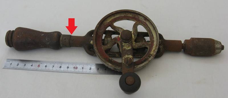 Wheel turns with difficulty. Top of handle missing as pictured. The handle sways when pushed at the point where the handle meets the main body as marked below.