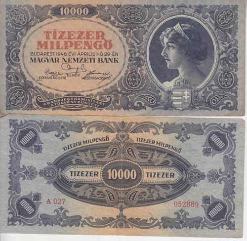POST WORLD WAR II INFLATIONARY ERA - HUNGARY 10,000 PENGO 1946 P126 VF.![]()